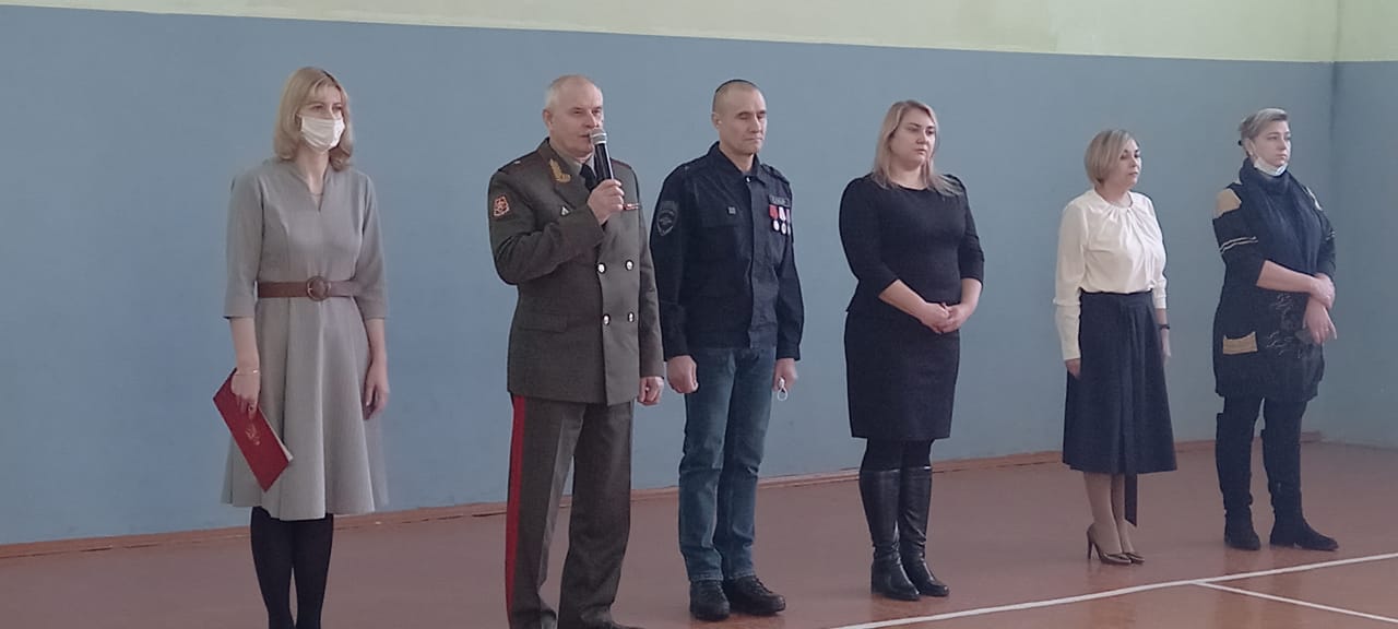 Перед началом торжественной присяги с напутственными словами выступила директор школы Ялалова Татьяна Владимировна, которая представила учащимся школы и присутствующим гостям генерал-майора Харченко Игоря Михайловича, который поздравил юнармейцев со значимым событием в их школьной жизни, вручил им удостоверения, значки и книжки юнармейцев. Генерал-майор выразил уверенность в том, что в ряды «ЮНАРМИИ» будут вступать все больше ребят – умных, спортивных, знающих и понимающих историю своей страны, любящих родной край и нашу большую Родину – Россию.