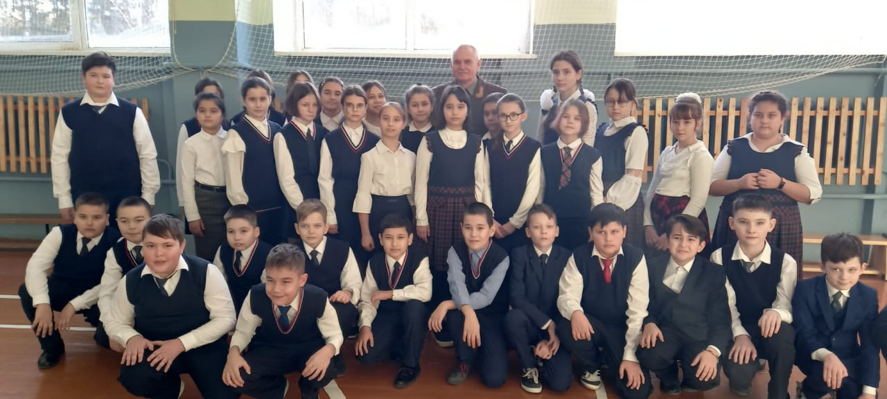 На мероприятии присутствовал почетный гость школы - майор спецназа Исламов Илгиз Вагизович, участник боевых операций в Чеченской Республике.