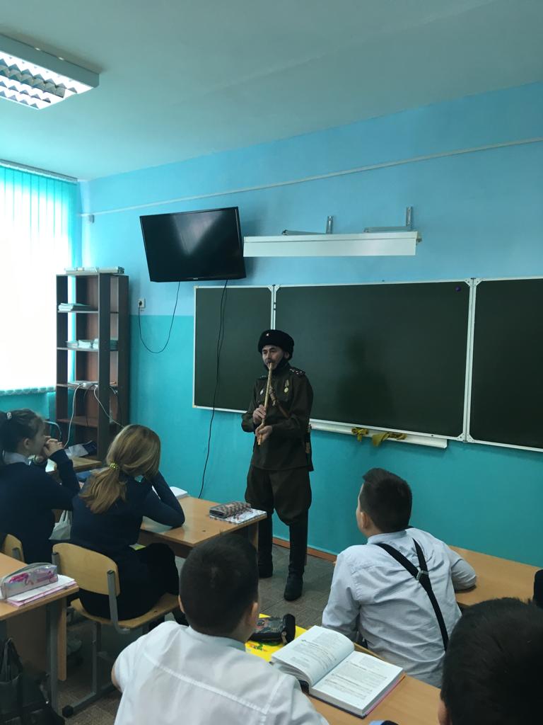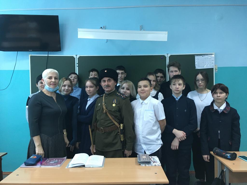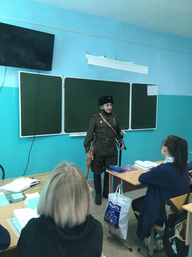В рамках празднования Дня защитника Отечества в школе был организован открытый урок учащихся 8 "б" класса с председателем правления Региональной общественной организации "Военно-патриотического клуба "1-й Башкирский конный полк Любизар" Республики Башкортостан" Шаяхметовым Ильдаром Гиндулловичем. Интересно и поучительно гость рассказал о героических подвигах башкирского народа в Отечественной войне 1812 года, а также об участии в Великой Отечественной войне наших героических земляков, в том числе легендарной 112-й Башкирской кавалерийской дивизии генерала Шаймуратова М.М.
