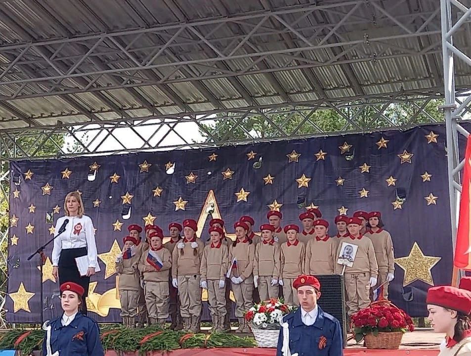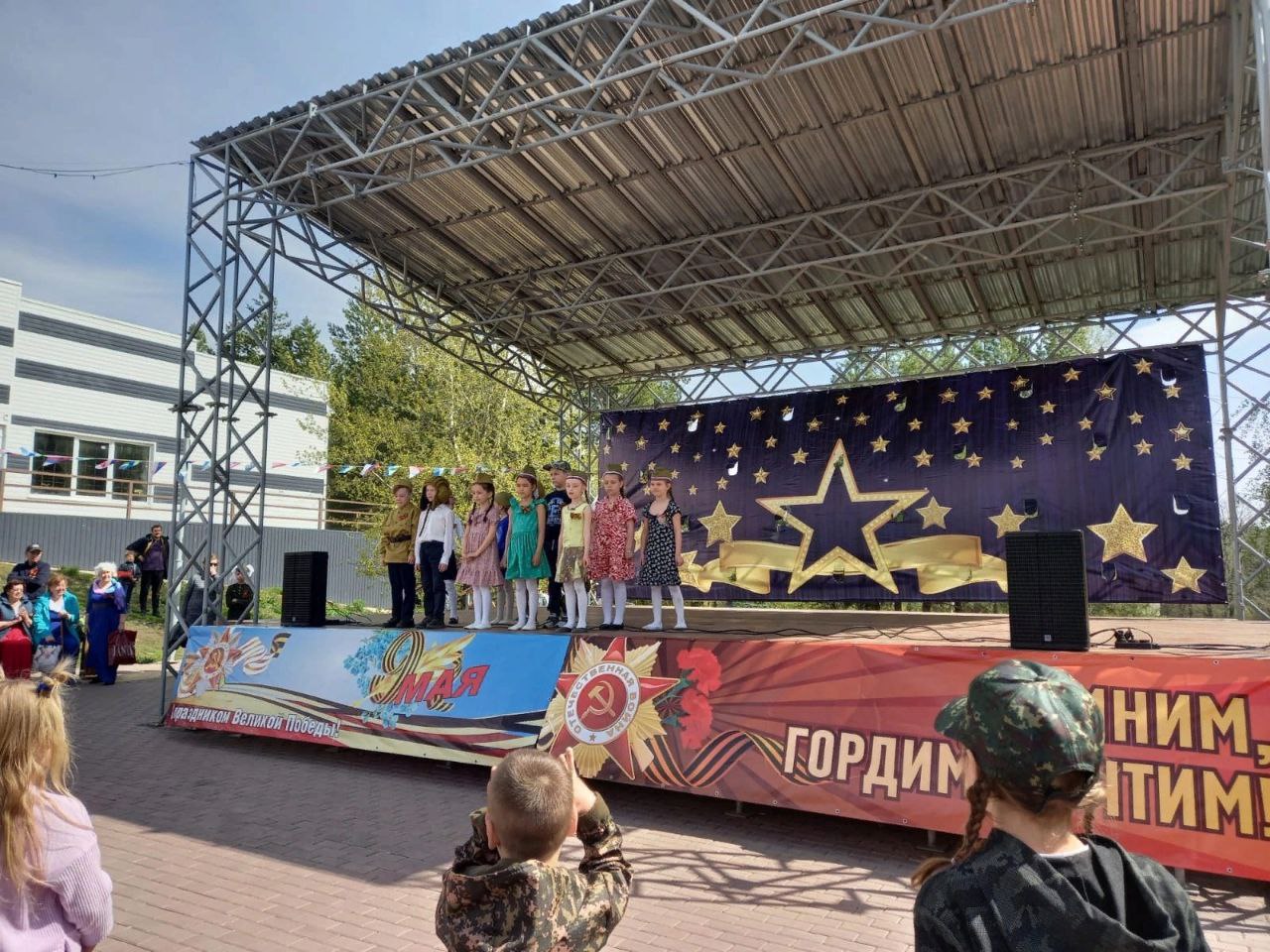 Также учащиеся юматовской школы выступили на праздничном концерте. Песню "Мой дедушка-герой" исполнил 1б класс, танец "Катюша" показала ученица 5б класса Шакирова Ангелина.