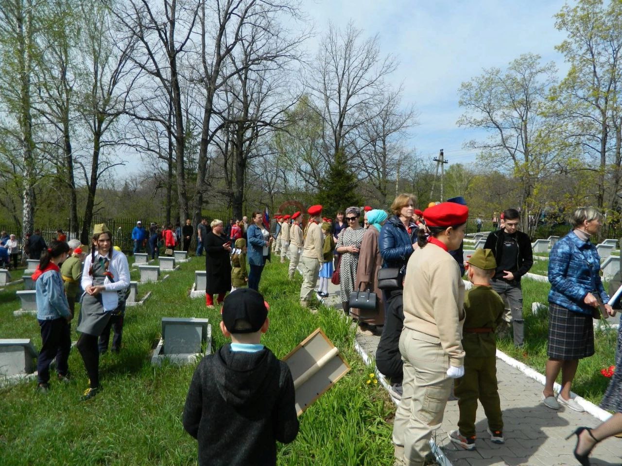 Наши учащиеся и педагоги приняли участие в митинге, посвящённому Дню Победы, который проходил в Юматово на площади Юность, после чего состоялось возложение гирлянды из еловых веток, выполненной нашими педагогами, на Братском захоронении. Юнармейцы встали в почётный караул и несли Вахту Памяти.