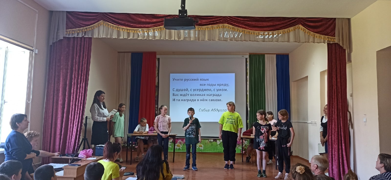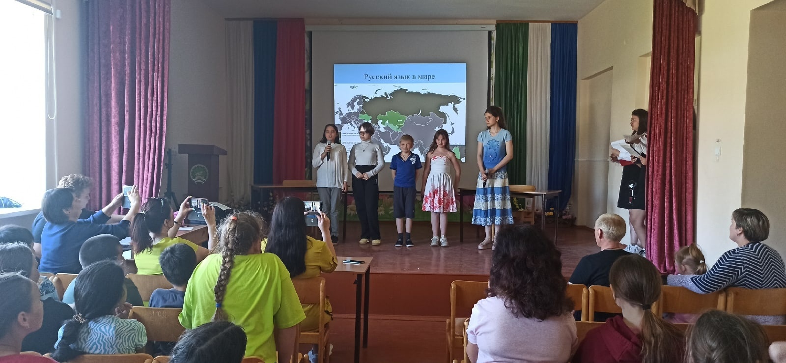В познавательно - конкурсной программе вожатые Гильманова А., Куксенко О., Ялалова С. рассказали о роли и значении русского языка, об истории возникновения данного праздника. На мероприятии также звучали стихи и высказывания великих людей о русском языке. В конце мероприятия команды из отрядов "Форсаж" и "Клëвые дети" с удовольствием состязались в знании русского языка, отвечая на вопросы викторины "Мой Русский язык".