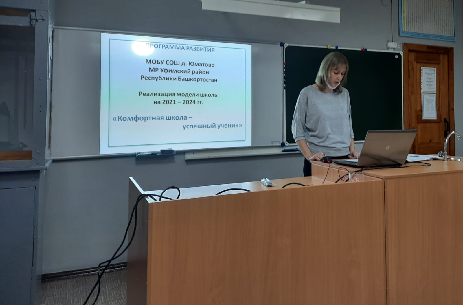 Заседание педсовета открыла директор школы Ялалова Татьяна Владимировна. Она ознакомила присутствующих педагогов с Программой развития МОБУ СОШ д. Юматово на 2021-2024 годы «Комфортная школа – успешный ученик».