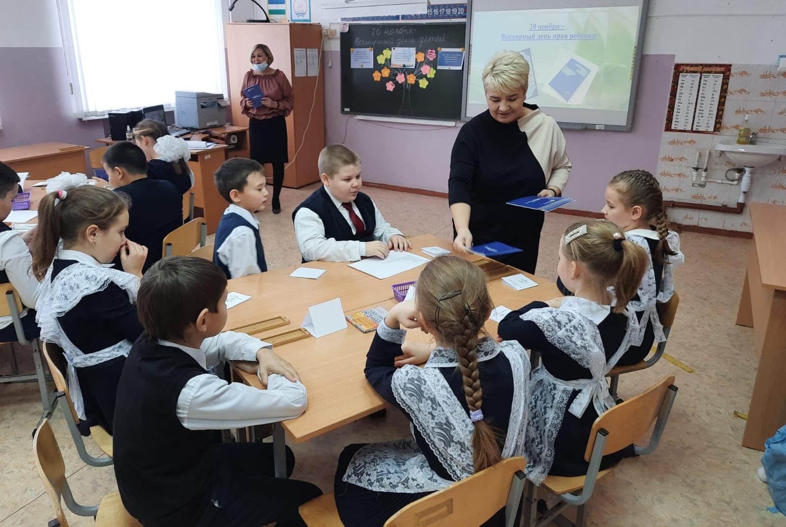 После общения с педколлективом омбудсмен посетила классный час в 4а классе на тему: "Всемирный день детей" (учитель Гимазова Л.М.), открытый урок в форме круглого стола в 10 классе: "Права, обязанности и ответственность несовершеннолетних" (учитель истории и обществознания Сагитова М.С.). Каждому учащемуся 4а и 10 классов Ольга Юрьевна преподнесла в подарок Конвенцию о правах ребёнка. После открытых уроков в актовом зале школы состоялась беседа с обучающимися 9 - 11 классов по интересующим их вопросам. Панчихина О.Ю. ознакомилась с представленным оборудованием по Точке роста в кабинетах биологии и физики, посетила выставку рисунков и стенгазет на тему: «Мои права, мои обязанности». В рамках проведения в школе Всемирного дня правовой помощи проводилась акция "Ящик доверия", в ходе которой обучающиеся 5 - 11-х классов отправляли записки с вопросами по правовой тематике. Все вопросы из ящика были переданы Ольге Юрьевне, в свою очередь она пообещала дать ответ на каждый вопрос ребят.