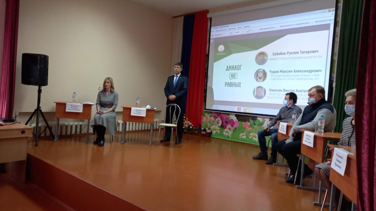 В ходе рабочей встречи состоялось обсуждение спортивных возможностей школы. Министр спорта РБ дал поручения: Администрации Уфимского района - открыть ставку тренера по биатлону, Федерации биатлона и лыжных гонок РБ - предоставить лыжи и винтовки, Министерству спорта РБ - пневматическую установку для стрельбы. В школе будет открыта секция лыжных гонок и биатлона. Для хоккейной коробки, находящейся на территории школы, будет сделан настил. Хабибов Руслан Тагиров пообещал приехать через год в школу и проверить выполнение своих поручений. Были установлены прямые контакты с ДЮСШ Уфимского района, которая будет способствовать школе в получении спортивного инвентаря.