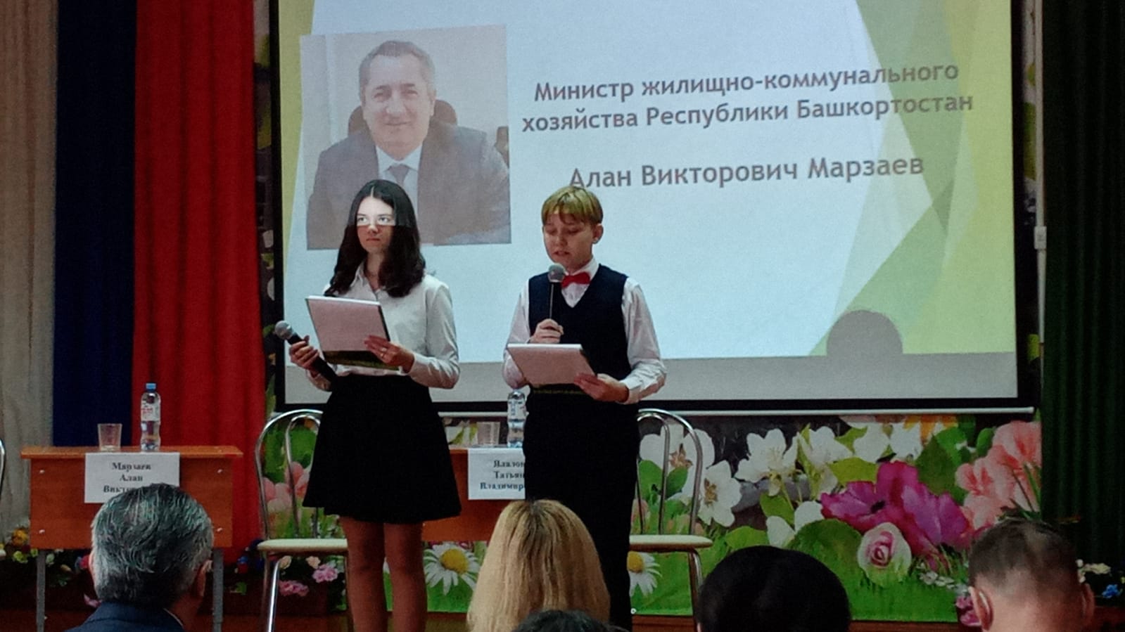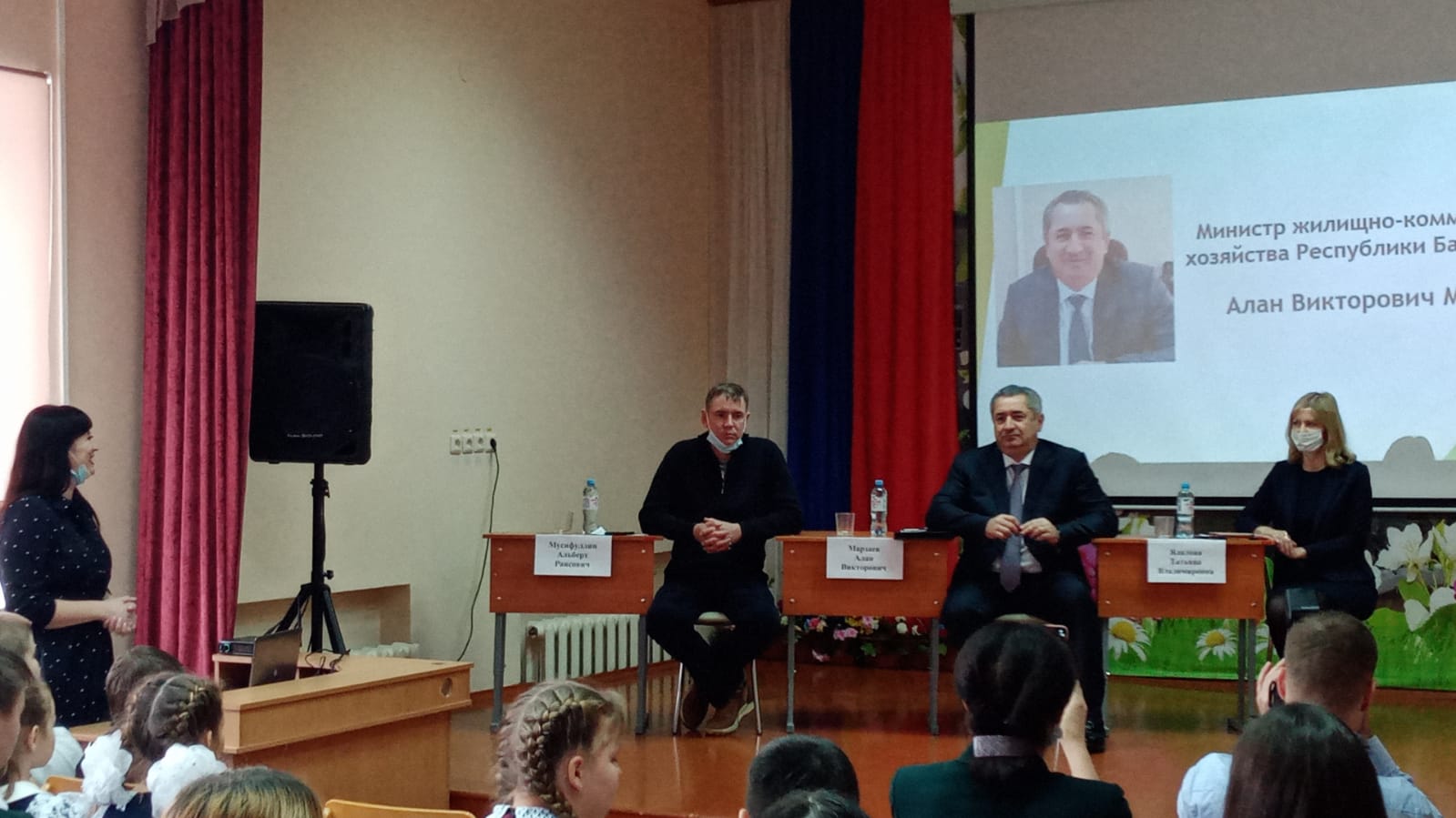 Алан Викторович Марзаев - министр ЖКХ Республики Башкортостан в пятницу, 10 декабря, стал вторым министром Правительства Республики, который приехал в гости к ребятам в школу д. Юматово.